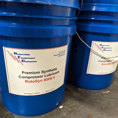 We carry premium synthetic compressor lubricant RotoSyn 8000-5, Roto Z Fluid, bearing oils, and all other types needed for the variety of brands of conveyors, pumps and motors we service.